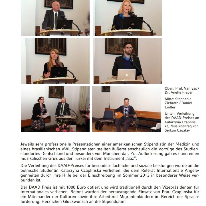 Begrüßungstreffen für Stipendiaten des DAAD und Verleihung des DAAD Preises, Musikbeitrag von Serkan Cagatay im Senatssaal LMU - 05.02.2014