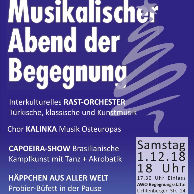 Beim „Musikalischen Abend der Begegnung“ in der AWO Begegnungsstätte Lichtenberger Straße in Braunschweig habe ich mit meinem Ensemble ein interkulturelles Musikprogramm unterstützt, das türkische, klassische und moderne Elemente miteinander verband und Menschen unterschiedlicher Herkunft musikalisch zusammenbrachte.