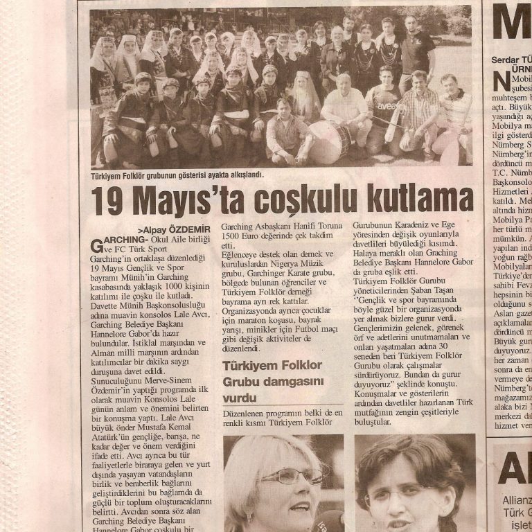 Bei der 19.-Mai-Gedenkveranstaltung 2009 in Garching bei München habe ich als Musikpädagoge und Ensembleleiter gemeinsam mit KünstlerInnen aus der Türkei ein Bühnenprogramm gestaltet, das historische Erinnerung, kulturelle Identität und intergenerationellen Austausch förderte.