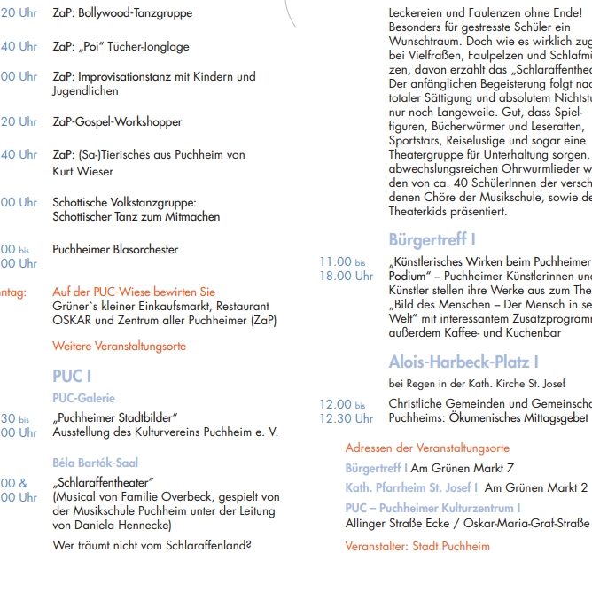 Beim 1. Stadtfest in Puchheim 2012 habe ich mit meiner Saz-Musikgruppe und Tanzensemble ein interkulturelles Bühnenprogramm gestaltet, das traditionelle türkische Musik und Tanz einem breiten Publikum näherbrachte.