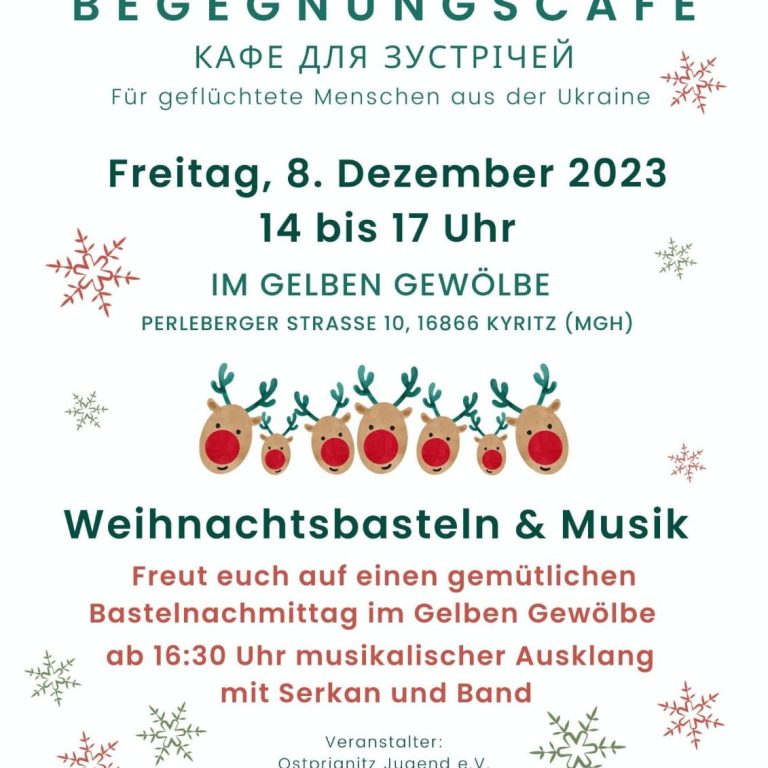 Beim Begegnungscafé für geflüchtete Menschen aus der Ukraine in Kyritz habe ich mit meiner Band einen musikalischen Ausklang gestaltet, der Gemeinschaft, Wärme und kulturelle Teilhabe in der Adventszeit förderte.