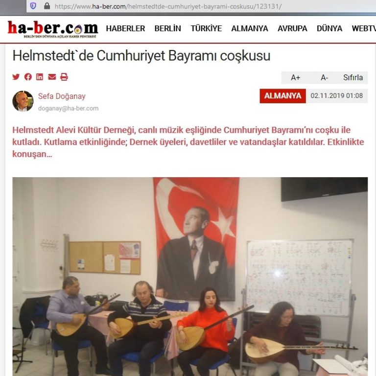 Cumhuriyetfeier der Republik Türkei Veranstaltung in der Alevitischen Gemeinde Helmstedt Programm mit Live-Musik, Chor, mit SAZ - 29.10.2019