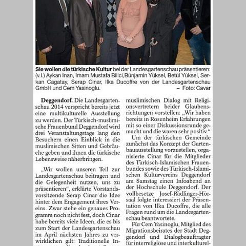 Bei den geplanten „Türkischen Tagen“ der Landesgartenschau 2014 in Bayern (die Veranstaltung wurde aufgrund des Hochwassers in Deggendorf abgesagt) war ich als Verantwortlicher für den Bereich Kultur und Musik in die Vorbereitungen eingebunden und habe an den Planungstreffen mit Vertreter*innen verschiedener Organisationen aktiv teilgenommen.